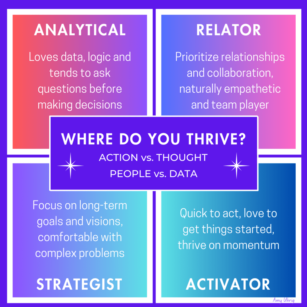 I’ve often been recognized as an Activator and personally identify as a Relator. But here’s the truth: it takes all of us—with our unique passions and skills—to make business (and life) thrive!